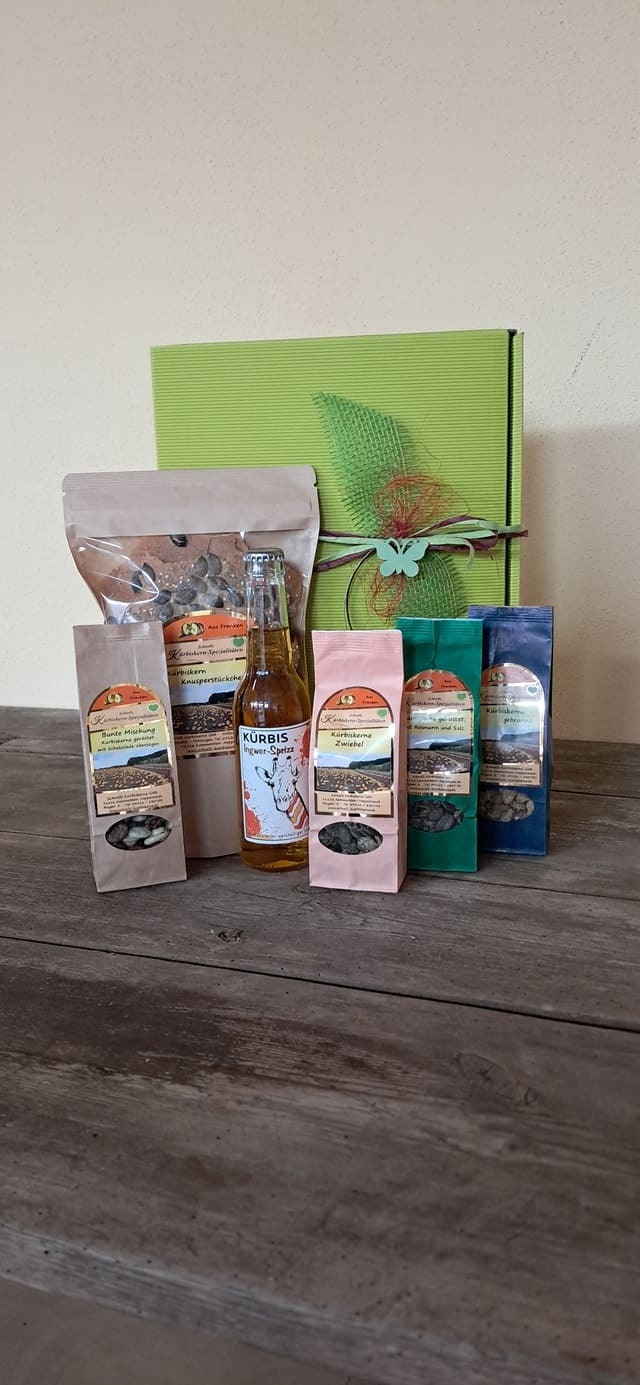 Unsere Snackbox ist die ideale Geschenkidee für alle, die regionale Spezialitäten, hochwertige Zutaten und unverfälschten Geschmack schätzen. Ob als besonderes Mitbringsel, stilvolles Geburtstagsgeschenk, Präsent für zwischendurch oder als Aufmerksamkeit für Kunden und Mitarbeiter – diese Geschenkbox vereint Genuss, Qualität und Regionalität in einer harmonisch abgestimmten Auswahl feinster Kürbiskern-Snacks.